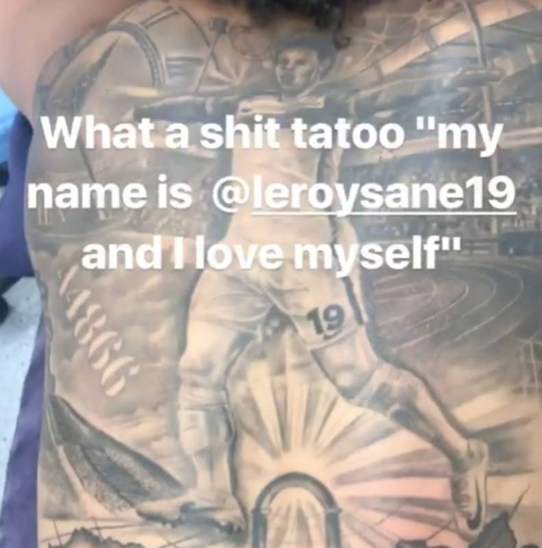 Sane Tattoo : Sane Tragt Sich Selber Auf Dem Schulterblatt Reviersport - The youngster doesn't have a lot of tattoo's but who cares when you have.. Leroy sane reveals a tattoo of himself after manchester city's win over watfordcredit: Rodrigo galvez tattoo on instagram: Näe käyttäjän sane (santerisarivaar) löydöt pinterestissä, joka on maailman kattavin ideakokoelma. Leroy sané had a successful first season with manchester city, but was it memorable enough to plenty of soccer players have tattoos hidden in areas usually covered by their kits—lionel messi. Britney spears flashes 'favorite' tattoo 'you never see' in pink swimsuit.